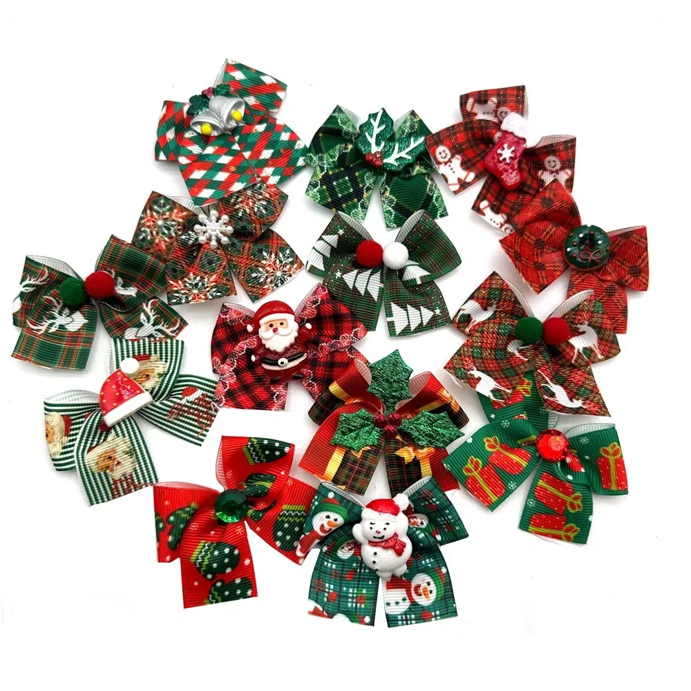 50 pcs Christmas Dog Hair Bows Rubber Bands Pet Small Dog Bow knot Dogs Bows for Dogs Grooming Pet Accessories for Small Dogs